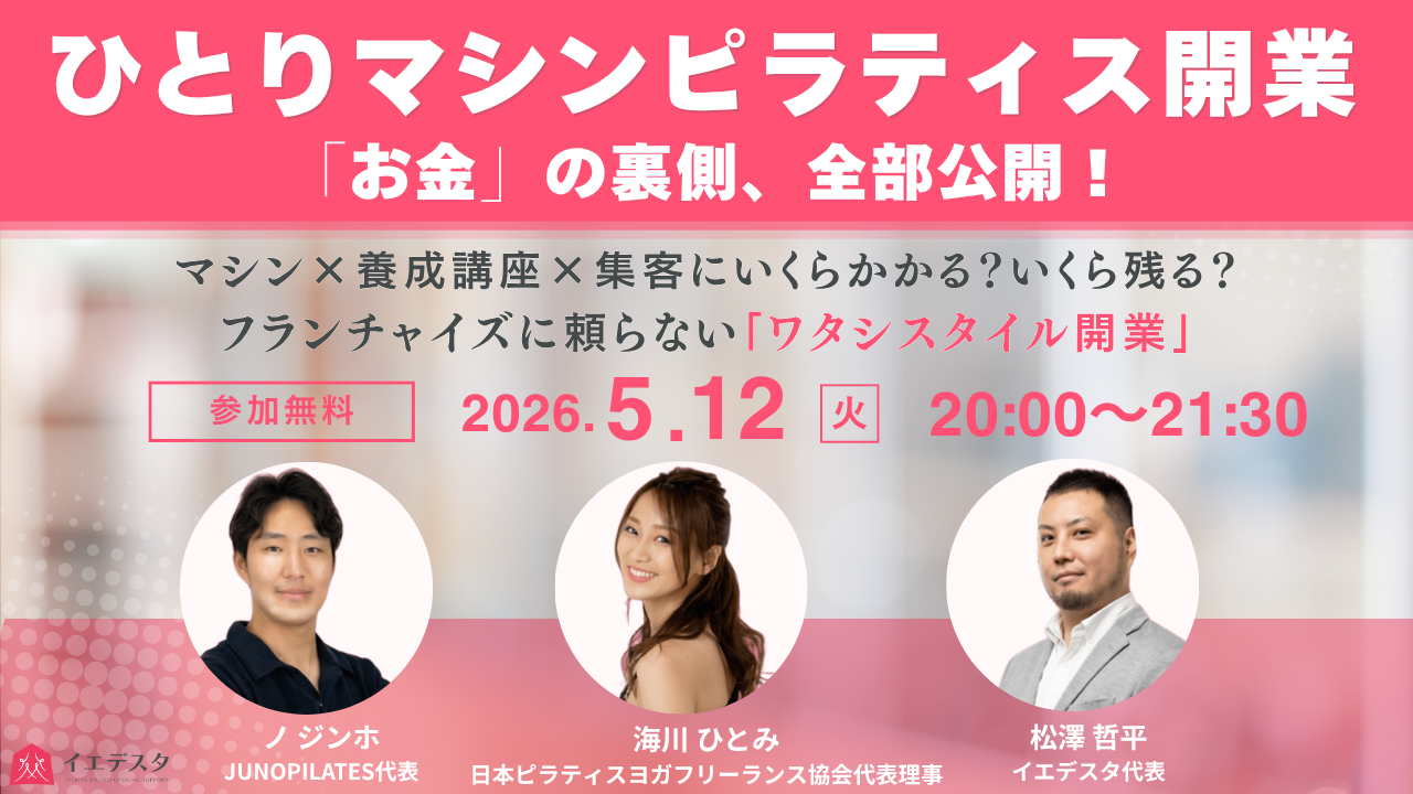 実体験に基づく集客方法を学びながら、大好きなお客様だけが集まるピラティス教室を、僕と一緒に作っていきましょう!